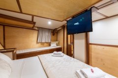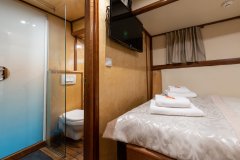 Elegant Cabin Comfort — Four beautifully appointed, air-conditioned cabins offering refined privacy and restful nights at sea.
