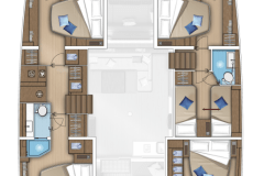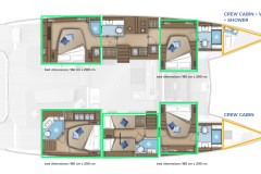 Advertised by Amwax Prime, the breathtaking charter yacht Tri-Wing is a 54 ft yacht. The primary distinction of Tri-Wing are her elegant profile and interconnection with the sea. She was constructed by the ship builder Lagoon-Bénéteau in 2024. The spacious yacht layout features 5 cozy cabins and easily accommodates a group of 12 guests.
