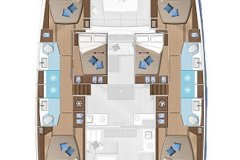 Presented by Amwax Prime, the astonishing charter yacht Victoria is a 50 ft yacht. The primary distinction of Victoria are her elegant profile and experienced crew. She was completed by the ship builder Lagoon-Bénéteau in 2019. The expansive yacht layout features 6 large cabins and comfortably accommodates a maximum of 12 guests.