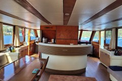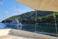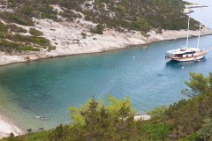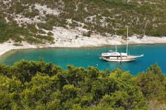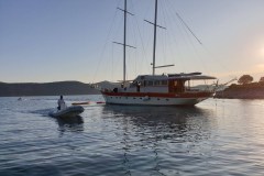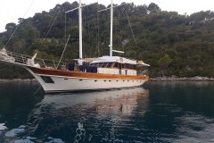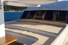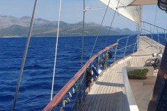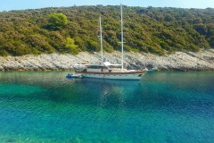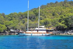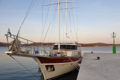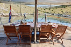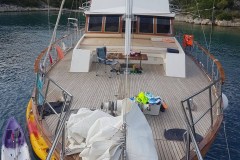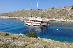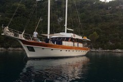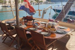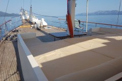 Vito is 27 meters long gullet built in 1993 and completely refitted in 2017. With its design and soul Vito offers You long-lasting feeling of the Adriatic Sea adventure. With its seven double bed cabins Vito is fine if You have request to accommodate more of friends. The dark wooden cabins will provide you a good night sleep on their comfortable beds. After your arrival place the clothes in spacious wardrobe and put your suitcase in the storage space. Each cabin comes with 24 V/220 electricity, bathroom towels, beach towel and its own private bathroom. Each cabin is air conditioned, but you will also find a small fan. Unlike the cabins, the bathrooms are quite bright. The white and beige design open up the space and the same holds a sink with mirror, soap and shampoo, shower point and a toilet.