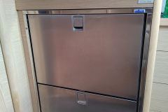 Fixed bowsprit, Cockpit shower (cold/warm), Water heater 40 L, Sockets in cabins and saloon, Fixed roof hatches aft, Blinds for deck hatches, Electric windlass 1000W with remote control, Cockpit table with wood, Lazy-Bag + Lazy-Jack, Outboard engine mount, Two additional genoa winches, Bow protection, Double bed in saloon, Additional fridge, LED courtesy lights, Reef line system back to cockpit