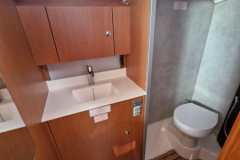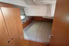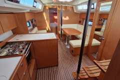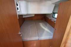 More powerful engine, 3-blade folding propeller, 10 kg Delta anchor with chain (8 mm - 75 m), railing hatch, blackout blinds for deck and hull windows, blackout blinds and insect screens for hatches in the saloon and cabins, deck fan on hatch in the saloon, cockpit shower hot/cold, 2 mast steps, bow protection for anchor in stainless steel, center cleats, GRP steering wheel, genoa rails with slide, 2 x 45 halyard winches, teak on the cockpit floor - on the cockpit benches - on the helmsman's seats and on the bathing platform, additional deck superstructure windows, interior: mahogany - floor: Ocean Line, reading lamps including USB charging port in all cabins and at the chart table, additional 150 L fresh water tank (total 360L), warm air heating in all cabins and saloon